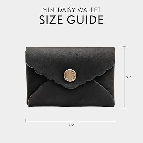 Mini Daisy Wallet for Women – Handmade from the Finest Full-Grain Hides – Features Envelope Design with Snap Closure – Black