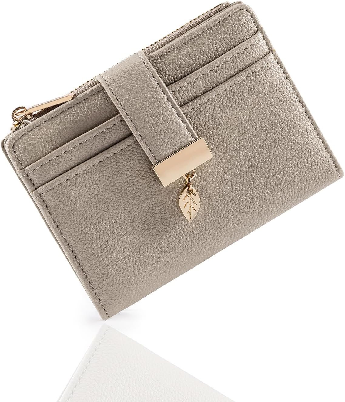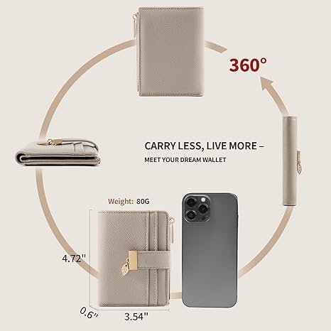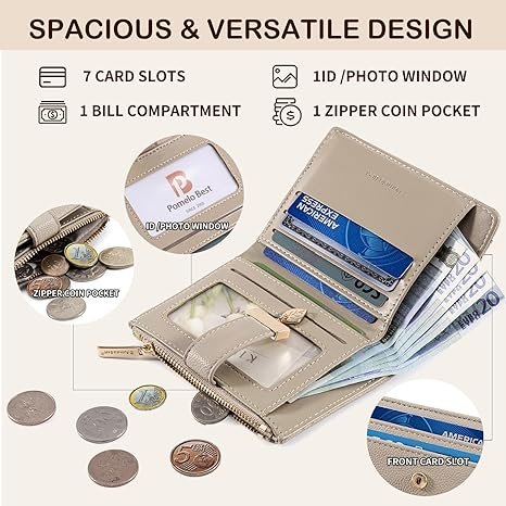 Wallet Women Bifold Leather RFID Mini Wallets for Women Credit Card Holder with ID Window Zipper Coin Pocket Taupe