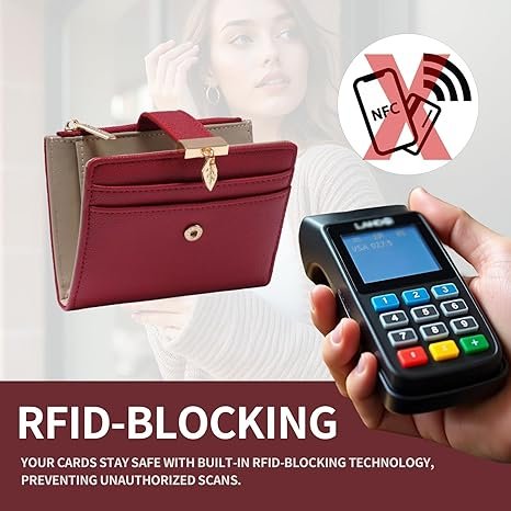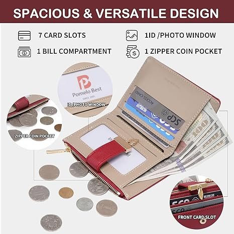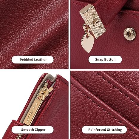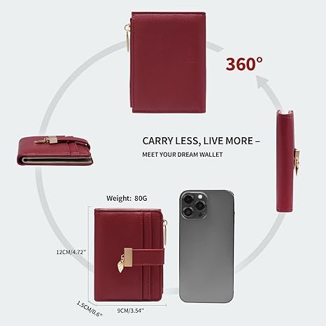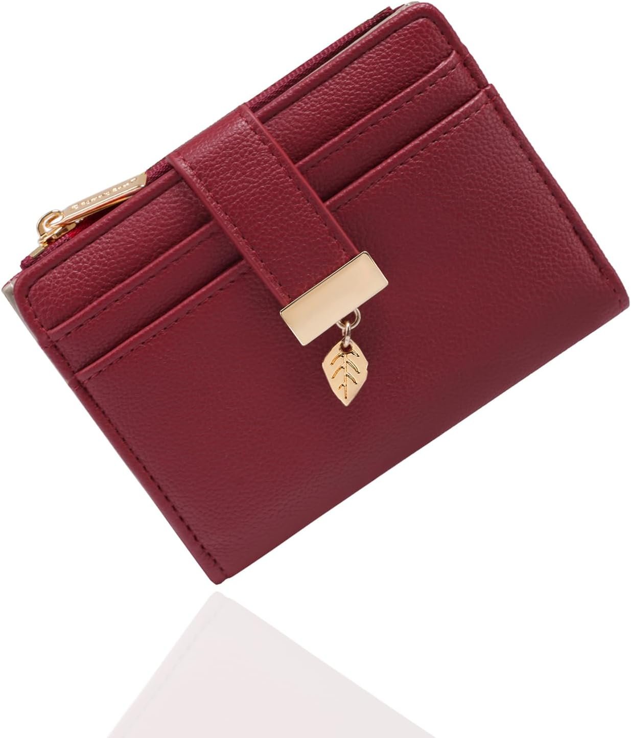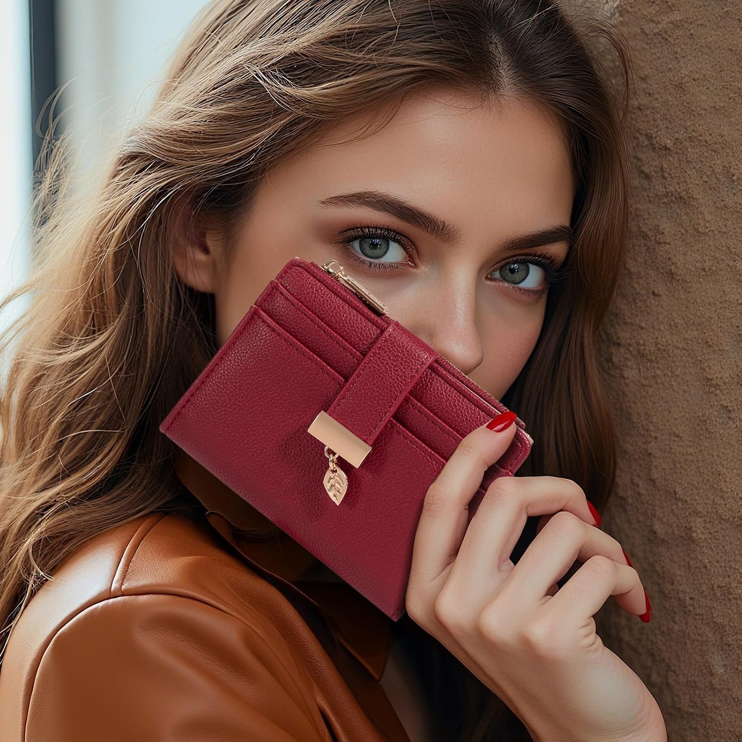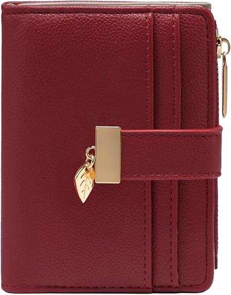 Wallet Women Bifold Leather Wallets for Women Credit Card Holder with ID Window Zipper Coin Pocket Red
